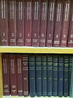 - Great Soviet encyclopedia, ed. A.M. Prokhorov (New York: Macmillan, London: Collier Macmillan, 1974–1983) 31 delen, drie indexdelen. Vertaling van de derde Russische editie van Bol'shaya sovetskaya entsiklopediya