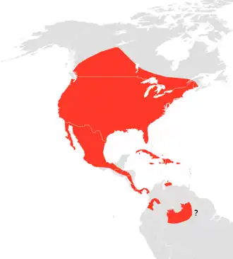 | Verspreidingsgebied van de grote bruine vleermuis | ||||||||||||