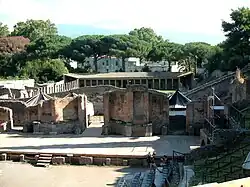 Het Grote theater is een theater uit de Romeinse tijd, begraven onder de as van de uitbarsting van de Vesuvius in 79 en gevonden bij de archeologische opgravingen van het oude Pompeii. komedies, mimespelers en pantomimes,[1] evenals de Atellane[2][1] waren binnen vertegenwoordigd.[2]