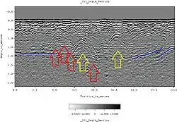 Radargram van een ground-penetrating radar, gemaakt op een historisch kerkhof in Alabama, in de Verenigde Staten