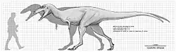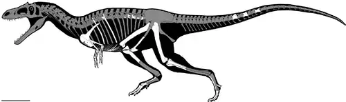 Het opperarmbeen, 286 millimeter lang, is zeer recht. De kop vormt een overdwars gerichte ovaal. De binnenhoek is overdwars dun en heeft geen groeve aan de achterste binnenkant. De deltopectorale kam is laag en kort met maar een kwart van de schachtlengte, net als bij Deltadromeus. De punt ervan is verdikt tot een verticale lobvormige ovaal, een typisch kenmerk van de Allosauroidea. De achterzijde heeft een ruw kuiltje, de aanhechting voor de Musculus scapulohumeralis posterior. De onderzijde van het opperarmbeen is zwak ontwikkeld. Er zijn geen diepe troggen in de zijkanten, geen oplopende beenstijlen en de onderste gewrichtsknobbels zijn niet overdwars verbreed. Ze zijn alleen van voren gescheiden door een kleine groeve. Hoewel de buitenste knobbel veel sterker van voor naar achteren verbreed is dan de binnenste, moet in het algemeen de musculatuur zwak geweest zijn. Ook de ellepijp is recht met boven achteraan maar een kleine afgeronde processus olecrani; het onderste uiteinde is niet verbreed. Het spaakbeen is ongeveer even breed als de ellepijp. Onder de ellepijp bevindt zich een halvemaanvormig polsbeentje en daarnaast een kleiner scafolunare.