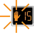![]() | Bestuurders van motorvoertuigen mogen rijden. | Voetgangers moeten op knop drukken om het proces te herstarten. | |