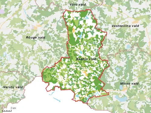 - ↑ (en) Cijfers van het Estisch bureau voor statistiek; tik onder het middelste vak ‘Haanja rural municipality’ in.