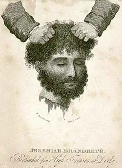 Jeremiah Brandreth die de opstand Pentrich rising van 100 man leidde, werd in 1817 een uur opgehangen te Derby Gaol. Daarna werd hij op aandrang van George IV van het Verenigd Koninkrijk onthoofd met een bijl. De plaatselijke mijnwerker die moest onthoofden, slaagde er niet in na twee houwen met de bijl en moest het hoofd van de romp scheiden met een mes. Toen hij het hoofd omhoog hield reageerde het volk met afschuw en vluchtte weg.