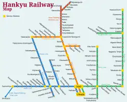 Het netwerk van Hankyu bestaat uit drie hoofdlijnen met verschillende zijtakken die de steden Osaka, Kyoto en Kobe verbinden.