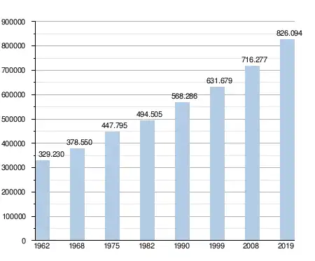 Bron: Recensement Populaire INSEE - 1962 tot 1999 population sans doubles comptes, nadien Population Municipale