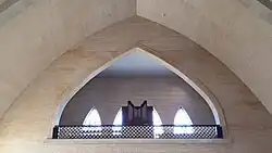 - Het derde altaar, is in hout, staat er nog maar sinds 1995; de plaatsing ging gepaard met de uitbreiding van de liturgische ruimte. Dit altaar wordt gebruikt tijdens de eucharistie.