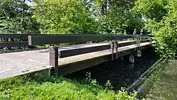 De brug is gelegen over een randwater/afwateringstocht van het genoemde park. Ze werd in 1969 ontworpen door architect Dirk Sterenberg werkend bij en voor de Dienst der Publieke Werken. De brug werd in 1970/1971 opgetrokken op een betonnen paalfundering, betonnen landhoofden en een houten brugpijler. Daarover liggen houten liggers met daarop gemonteerd planken en donkerbruine leuningen uitgevoerd in tropisch hardhout. De brug werd aangelegd terwijl men ook bezig was met de bruggen in het Amstelpark. Het voetpad werd na oplevering van de brug verlegd zodat het op de brug aansloot. In 2022 werd de brug gerenoveerd.