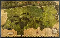 De enorme kaart (23,58 m²) werd gemaakt in opdracht van het Brugse Vrije in de periode 1561-1571. Van de oorspronkelijke kaart blijft slechts de rechterbovenhoek over (die valt te bezichtigen in het Groeningemuseum). In 1601 (sommige bronnen zeggen 1597)[2] werd een getrouwe kopie afgeleverd door Pieter Claeissens, omdat het origineel na vijfentwintig jaar al zware schade had geleden. Deze kopie valt te bezichtigen in het Stadsarchief van Brugge.