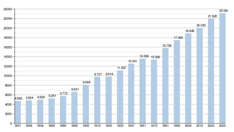 Alle historische gegevens hebben betrekking op de huidige gemeente, inclusief deelgemeenten, zoals ontstaan na de fusie van 1 januari 1977.
