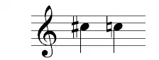 De toon c" is door een kruis verhoogd tot cis" en vervolgens door het herstellingsteken weer tot de stamtoon c" teruggebracht.
