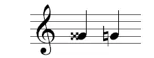 De toon a' is door een dubbelmol verlaagd tot ases' en vervolgens door het herstellingsteken weer tot de stamtoon a' teruggebracht.