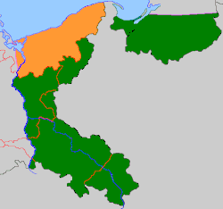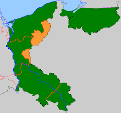 - Gebieden die tot de Poolse Delingen deel uitmaakten van Polen (Ermland, Malbork, delen van Pommerellen, noordelijk Groot-Polen inclusief Piła, Wałcz en Złotów, die door Pruisen werden geannexeerd in de Eerste Deling van 1772; en Gdańsk en westelijke delen van Groot-Polen met inbegrip van Międzyrzecz en Wschowa, die volgden in de tweede deling van 1793)