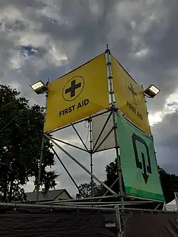 Een grote EHBO-post ziet eruit als een 'kleine spoeddienst' op het evenement: bij aankomst van een slachtoffer in de hulppost, wordt een triage uitgevoerd. Er wordt een kleurcode toegekend aan het slachtoffer, volgens de ernst van de verwondingen en de tijd dat een patiënt kan wachten op verzorging. Doorgaans zijn er 4 zones in een hulppost: een Rode zone (T1, levensbedreigende letsels), een Gele zone (T2, ernstige verwondingen of aandoeningen, maar niet levensbedreigend), een Groene zone (T3, lichte verwondingen) en een 'Uitslaapzone' (een ruimte met brancards waar patiënten met ziekte of intoxicatie kunnen slapen en gemonitord worden).