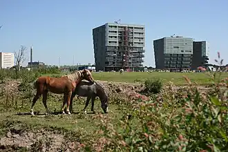 De bebouwing in de buurt bestaat voornamelijk uit laagbouw (rijtjeshuizen en twee-onder-een-kap woningen) en appartementengebouwen. Volgens de planning moet Het Zand gereed zijn in 2014, en zal dan 4300 woningen tellen.