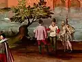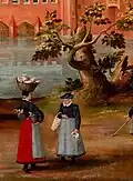 In het Rijksmuseum wordt een anonieme 19e-eeuwse litho bewaard met daarop de beschrijving van elk personage. Jan III van Egmont, de grootvader van Lamoraal van Egmont, staat samen met zijn vrouw Magdalena van Weerdenburg en de kanunnik, de deken, de abt en de hofnar afgebeeld. In het midden van het schilderij bevinden zich de schout, de boer, de hellebaardier, de jager en de duinmeier. Links zitten een boer, een boerin en een meid. Links op het schilderij staat Egmond aan Zee, rechts Alkmaar.