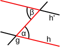 - De hoek tussen twee lijnen wordt gegeven als gerichte hoek en is dan goed gedefinieerd 'modulo' .