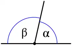 - en zijn supplementaire hoeken, de ene is het supplement van de andere, als de som van de twee hoeken een gestrekte hoek is, wiskundig: of 180°.