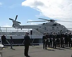 | Bewapening | 1 x 76mm-kanon,1 x 30mm-snelvuurkanon, 2 x 12,7mm-machinegeweer, 2x 12,7mm Hitrole Machinegeweer NH90 NFH helikopter, 2x FRISC RHIB met 2x 370pk Volvo Penta D6, 12M 10 persoons met 2x 7.62mm MAG machinegeweer. Lanceerinrichting FRISC vanuit de spiegel/ Bakboord Davids. | |||