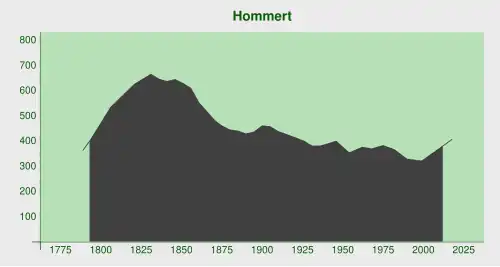 De oppervlakte van Hommert bedraagt 3,5 km², de bevolkingsdichtheid is 92,3 inwoners per km².