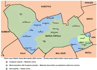 - ↑ Population by ethnicity – Bačka Topola. Statistical Office of the Republic of Serbia (SORS). Geraadpleegd op 8 January 2013.