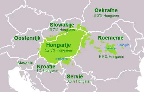 Net buiten de grenzen wonen in de buurlanden nog eens 2,1 miljoen etnische Hongaren (census 2011).
