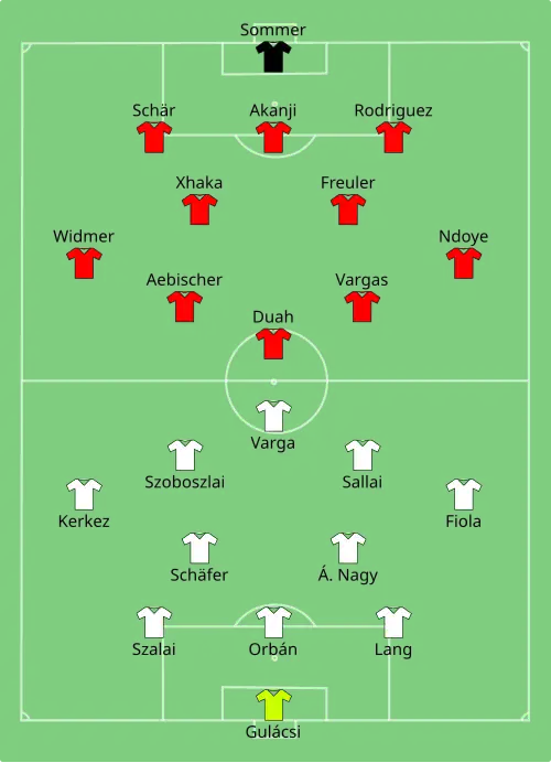 Hongarije opende zijn EK op 15 juni 2024 in Keulen tegen Zwitserland. In de twaalfde minuut maakte Kwadwo Duah op aangeven van Michel Aebischer zijn eerste interlanddoelpunt. Vlak voor de rust scoorde Aebischer zelf zijn eerste interlanddoelpunt, van buiten het strafschopgebied. In de tweede helft kopte Barnabás Varga al vallend de aansluitingstreffer binnen voor Hongarije, maar in de blessuretijd besliste invaller Breel Embolo het duel door de 1–3 te maken met een lob over Péter Gulácsi.[5]