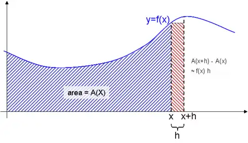 Volgens de hoofdstelling is het berekenen van de oppervlakte onder een functie herleid tot het zoeken van een primitieve functie van . Stel dat men de oppervlakte onder de functie wil kennen, zeg tussen de punten en . De functie is een primitieve functie van .
