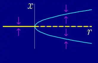 Het gedrag van de hooivorkbifurcatie wordt beschreven door de normaalvorm: