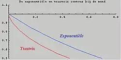 Wanneer men de contour van een exponentiële hoorn vergelijkt met die van de tractrixhoorn dan merkt men dat deze laatste een uitgesproken exponentieel verloop heeft bij de hals en daar merkelijk van afwijkt naarmate men de mond (zie figuur) nadert. Bij de mond heeft de tractrix een openingshoek van 180 graden. Latere studies en metingen hebben uitgewezen dat de hypothese van zuivere bolvormige golffronten ook niet met de werkelijkheid in overeenstemming te brengen zijn.[3] Een aantal in de praktijk gerealiseerde hoornontwerpen[4] zijn volgens dit principe gebouwd. Als designparameter wordt hier wederom de afsnijfrequentie gebruikt die door middel van en het oppervlak van de mond en daarmee het hele verloop van de tractrix bepalen.