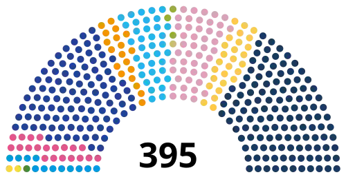| Aantal zetels | 144 | 240 | 264 | 306 | 333 | 325 | 325 | 325 | 395 |