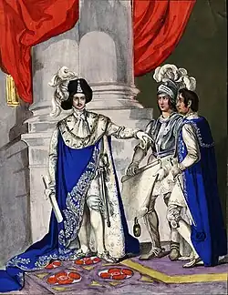Op de twee feestdagen van de orde, de 24e april en de 8e december, droegen de leden van de orde hun barokke blauw met witte ordekleding en het kruis aan een gouden keten om de hals. Deze mantel was van lichtblauw fluweel en afgezet en gevoerd met hermelijn en witte zijde. De ridders droegen een witte broek, sokken en schoenen met rozetten.