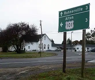 De onderstaande figuur toont nabijgelegen plaatsen in een straal van 24 km rond Hydesville.