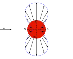 De druk die veroorzaakt wordt door de stuwing () is de stuwdruk. De snelheidsveranderingen die optreden tijdens het omstromen van het voorwerp – doordat aan de continuïteitsvergelijking moet worden voldaan – veroorzaken drukveranderingen en met de potentiaaltheorie zijn deze uit te rekenen. Deze drukverdeling op het oppervlak van het lichaam resulteert in een kracht. Omdat er in een ideale vloeistof geen wrijving is, is de drukverdeling aan de voor- en achterzijde symmetrisch (zie figuur 2), en is er geen resulterende kracht.