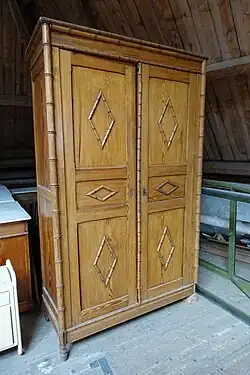 Ook in de architectuur komt imitatie voor. In kerken staan vaak gemarmerde altaren en pilaren. Deze elementen zijn vaak van hout gemaakt en daarna zodanig beschilderd dat zij van afstand toch op marmer lijken. Echt marmer was vaak te duur, of te zwaar voor ondergrond van de kerk. Bij meubels was het rond 1900, maar later ook nog, mode om bamboe te gebruiken. Dit was een exotisch product en daardoor duur. Om het bamboe-uiterlijk te verkrijgen werden er ook houten meubels gemaakt waar de knoesten in het hout gesneden werden, zoals bij de kast op de foto. Het kwam ook voor dat goedkoop hout zodanig beschilderd werd, dat het op duurder hout lijkt.