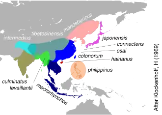 | Verspreidingsgebied van de Indiase junglekraai en diverse andere soorten. | ||||||||||||