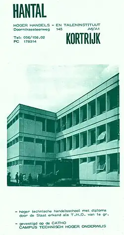 - ↑ BLOMME E. Vrij Hoger Technisch Instituut Kortrijk, 1965-1990. 25 jaar graduaatsopleiding, VHTI, Kortrijk, 1991, p. 14-15; VERFAILLIE V. Hantal 1939-1989. 50 jaar handelsgraduaat, Die Keure, Brugge, p. 53.