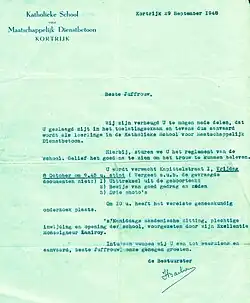 | Katholieke School voor Maatschappelijk Dienstbetoon | Plein 11 a, Kortrijk | September 1951 | Juli 1955 | Enkel vrouwen |