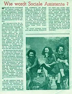 - ↑ 'Het onder onsje der KVMA.' Beroepsgroepering Katholieke Vlaamse Maatschappelijk Assistenten, Brussel, 11.12.1947, p. 4.