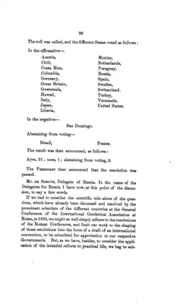 - ↑ International Conference Held at Washington for the Purpose of Fixing a Prime Meridian and a Universal Day. October, 1884 - Protocols of the Proceedings (Washington {D.C.]: Gibson Bros., Printers and Bookbinders, 1884), pp. 1 & 6. Gearchiveerd op 1 april 2023.
