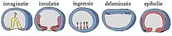Involutie is de migratie van een cellaag naar binnen, waarbij deze over een buitenste laag cellen glijdt. Involutie komt voor bij de gastrulatie tijdens de embryogenese. Dit komt voor bij amfibieƫn en visembryo's. Een andere situatie doet zich bijvoorbeeld voor bij embryo's van vogels en zoogdieren, waarbij de epiblastcellen individueel en in een langzaam tempo de primaire lichaamsholte binnendringen.