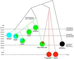In 2019 werd de genoomsequentie van een skelet uit een begraafplaats bij Rakhigarhi vastgesteld, daterend uit circa 2800-2300 v.Chr., welke erop duidde dat het grootste deel van het genoom afkomstig was van Iraanse jagers-verzamelaars. De divergente zusterlijn (>12.000 jaar), die een recente gemeenschappelijke voorouder deelde met de neolithische Iraniërs maar zich van hen had afgesplitst vóór de ontwikkeling van de landbouw, en die het best wordt vertegenwoordigd door overblijfselen uit Shahr-e Sukhteh, vormde de belangrijkste vooroudercomponent van de Indusbeschaving, in combinatie met wisselende hoeveelheden lokale Oost-Euraziatische voorouders die Ancient Ancestral South Indian (AASI) worden genoemd. De verspreiding van Oud-Iraanse voorouders, en/of Indusvallei-achtige voorouders, kan verband houden met de verspreiding van vroege Dravidische talen, hoewel dit onzeker blijft, aangezien er ook tegengestelde meningen zijn gepresenteerd, waarbij sommige geleerden deze voorouders in verband brengen met de verspreiding van Indo-Arische talen.