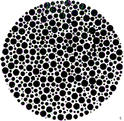 Aan de proefpersoon worden plaatjes met gekleurde stippen getoond. Stippen van gelijkaardige kleuren zijn in cijfers geordend. Kan de proefpersoon de cijfers onderscheiden, dan is hij niet kleurenblind.