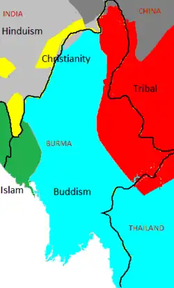 - Westelijkste delen van Myanmar, vlak bij de grens met Bangladesh (Rohingya).