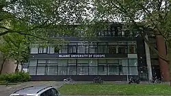 De Europese Islamitische Universiteit (European Islamic University – IUE) werd in 2001 opgericht in de stad Schiedam, vier jaar na de oprichting van de Islamitische Universiteit Rotterdam (IUR), door een groep docenten die zich had afgescheiden van de IUR. De IUE nam in haar beginfase grotendeels het curriculum, het programmamodel en de institutionele structuur van de IUR over, en kan om die reden worden beschouwd als een structurele afgeleide van de oorspronkelijke instelling. In de eerste jaren hanteerde de IUE een strategie van snelle uitbreiding en startte zij met afstandsonderwijsprogramma's in onder meer Duitsland, Frankrijk, België en Turkije. Deze uitbreidingspoging kon echter niet worden ondersteund door een stabiele academische staf en een duurzame institutionele structuur. Gebrekkige kwaliteitsborging, bestuurlijke instabiliteit en tekortschietend toezicht leidden tot ernstige reputatieschade. In deze periode verschenen in de media ook negatieve berichten over de IUE, wat haar maatschappelijke legitimiteit verder ondermijnde.[7] Als gevolg hiervan zag de IUE zich in 2018 genoodzaakt al haar onderwijsactiviteiten te staken. In 2019 werd zij officieel failliet verklaard en definitief opgeheven.