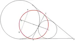 - Als de lijn de omgeschreven cirkel raakt een parabool,