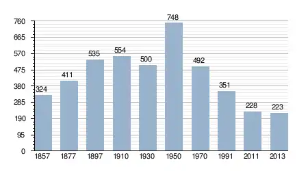 - Bron: INE, 1857-2011: volkstellingen