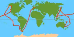 Nadat het gezelschap voor langere tijd in Kamtsjatka had verbleven, werd de reis voortgezet richting Samoa, waar La Pérouse 6 december 1787 landde. Na een bezoek aan Tonga werd Botany Bay in Australië op 26 januari 1788 bereikt. Het was toevalligerwijs exact dezelfde dag dat kapitein Arthur Phillip Sydney stichtte.