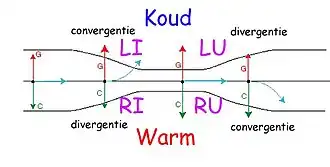 Schematische voorstelling van bewegingen in en rond een jetstreak
