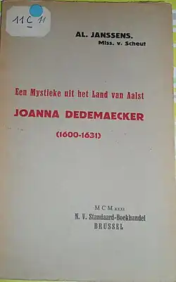 - A. Janssens: Een Mystieke uit het Land van Aalst. Joanna Dedemaecker (1600-1631). Brussel: Standaard-Boekhandel, 1931.